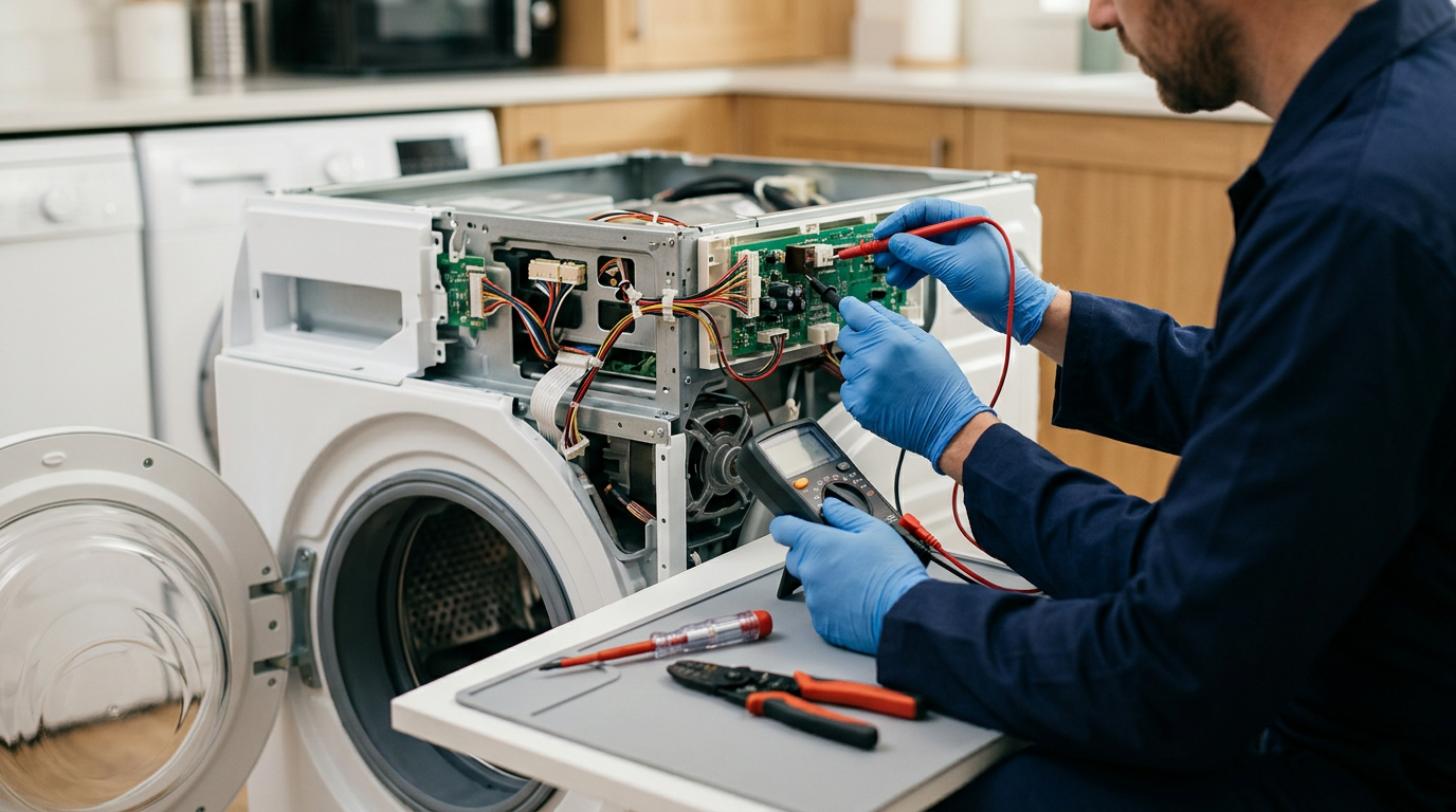 الجزء الأول: الأسباب الكهربائية لتوقف الغسالة
